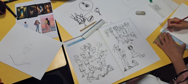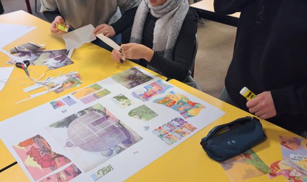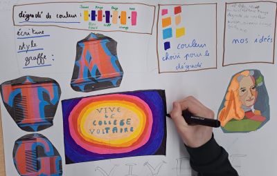 Cette étape de travail permet aux élèves d’organiser leurs premières idées. Quels thèmes ? quels messages ? quelles couleurs ? quelle intégration de la fresque au sein du collège ?....