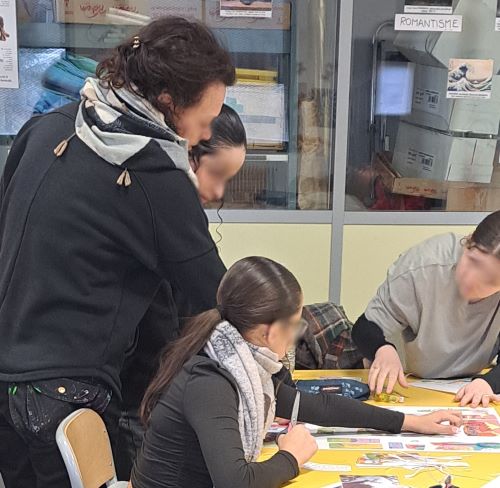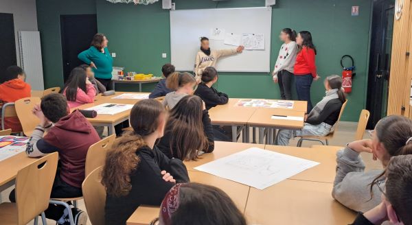 Après un temps d’échange sur le street art, les élèves découvrent le projet auquel ils vont participer : réaliser une fresque sur le mur de la salle de permanence.