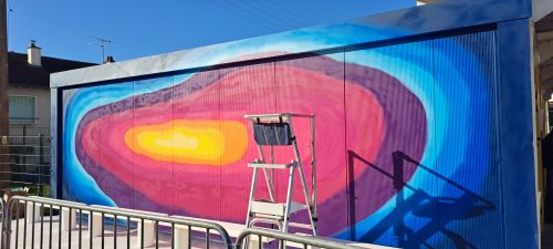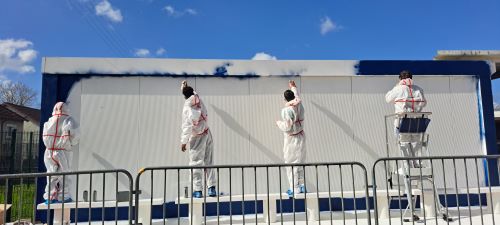 Elle est cette semaine au collège pour aider les élèves à bomber, à peindre la fresque.